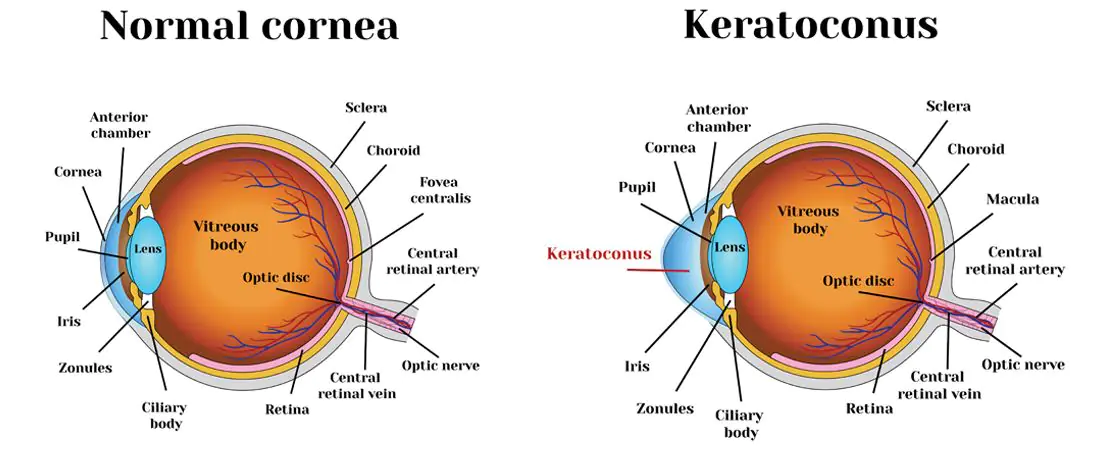 1. Myopia and Astigmatism: Patients experience nearsightedness and astigmatism due to the irregular shape of the cornea.